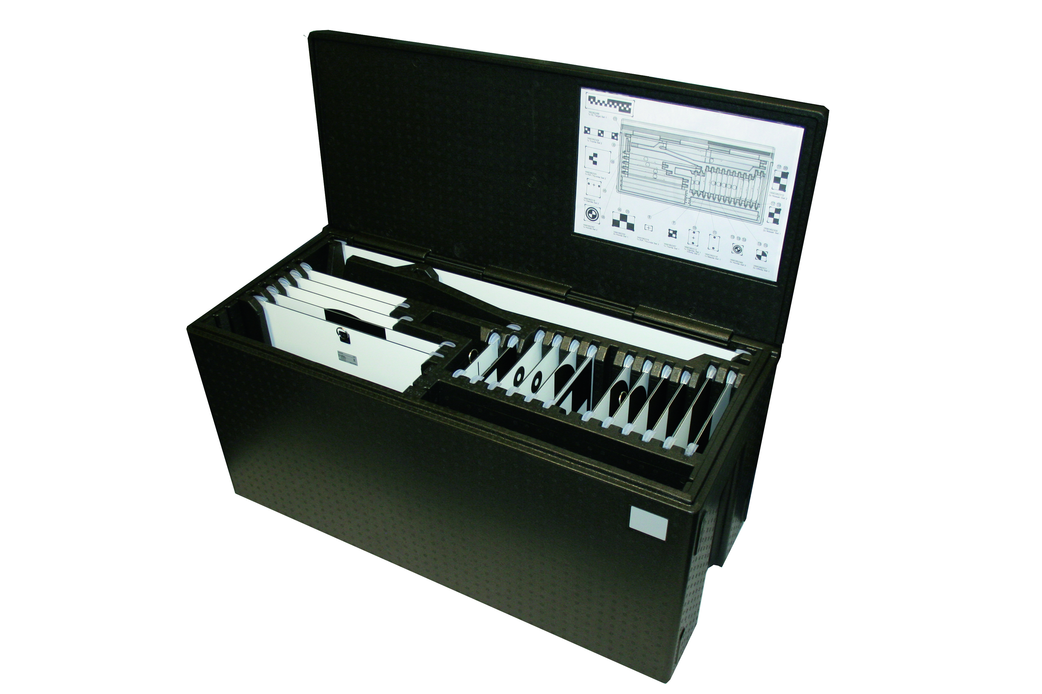 • Robust camera targets with integrated storage box makes finding the proper target easy and helps maintain the integrity and serviceability of the targets. Conveniently stored in the calibration unit keeps your work area organized.