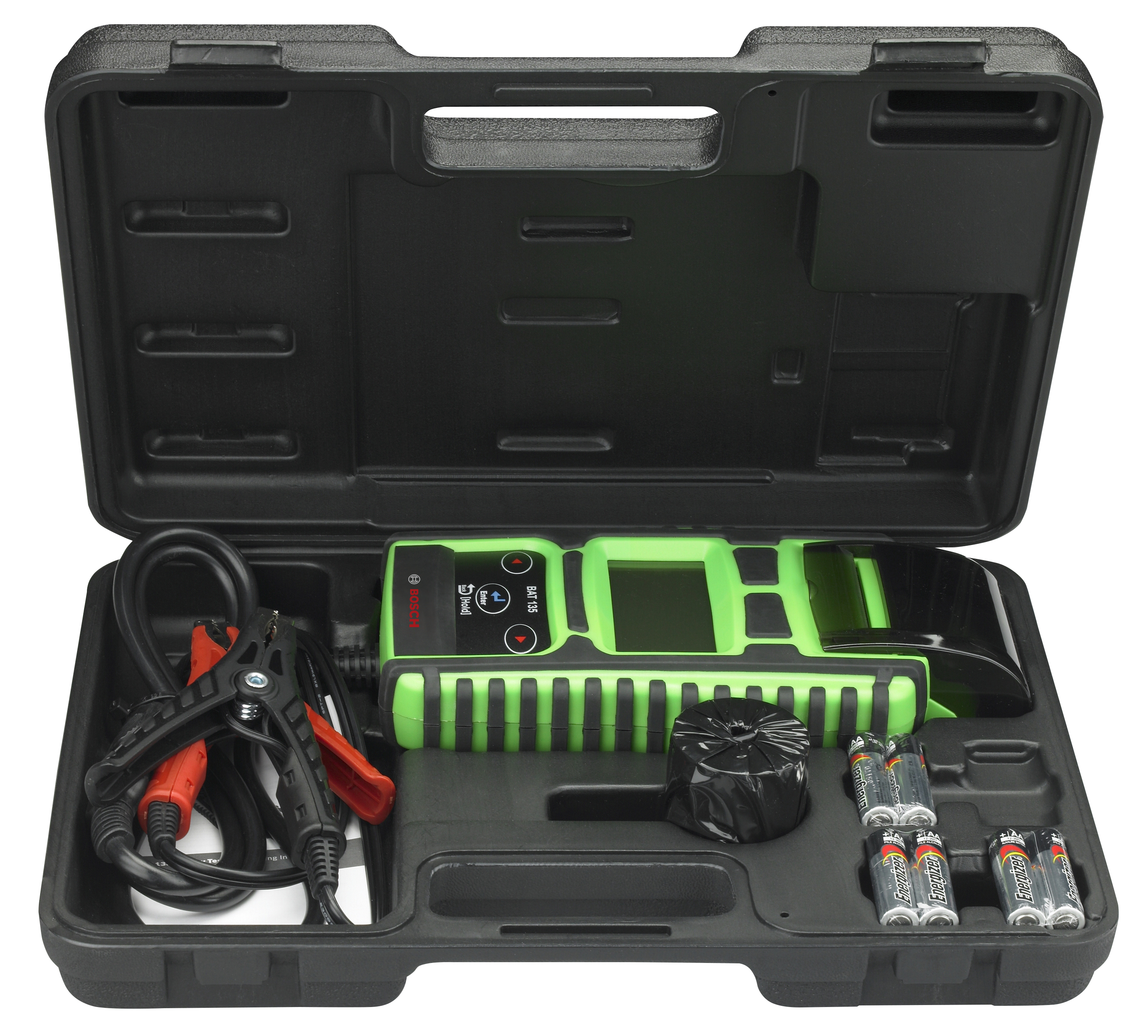 The BAT 135 battery tester with integrated printer tests 6V and 12V batteries from 40 - 2,000 CCA including AGM, Gel cell, flooded lead-acid, start/stop EFB and Commercial SLI batteries using a micro-load test for proven, accurate results. It will also test 12V and 24V charging systems with a diode/ripple test. The integrated printer captures test results for customer records, presenting state of health and state of charge percentage. Test clamps are detachable for service or replacement.
