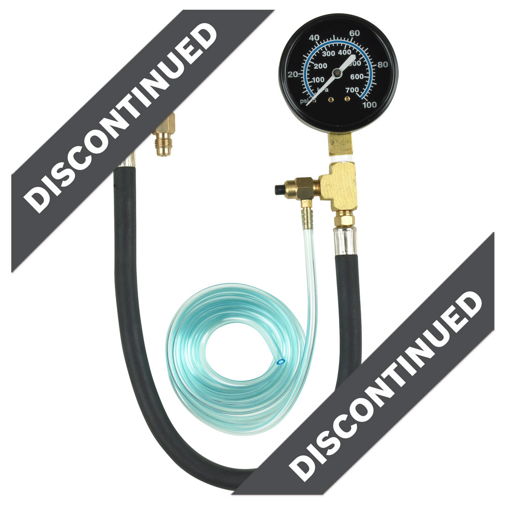 Safely test car and truck fuel pressure systems equipped with a Schrader or fuel access valve test port on the fuel line.